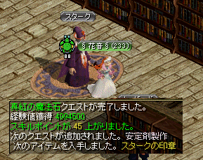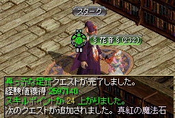 クエストも途中キャンセルしまくって、メンテまでこのまま起きてようかなあ・・・なんて思いながら古都をウロウロ。 あ・・そいあ、連動クエでウマイとか聞いたクエストがあったなあ・・ チョキーの近くだったきがする・・とふと思い、チョキ周辺ウロウロ ※ メリは攻略サイトをまず見ないので、ここで時間は2.30分経過。 そして、運命の少女【古都ブルンネンシュティグ 7.88】にいるエミリーさんとご対面。 ※このクエスト Lv110以下で話しかけるとアルパス秘密ダンジョンへ行くことになる模様。 メリの場合は、110↑だったのでビガプールにいるお父さんの容態を聞き、戻り ここでなんと100万近い経験地をもらうことにニヤ(・∀・)ニヤ 続いて、連動クエとなる未完の任務【アリアン傭兵Gの11.9セシルさんからクエを貰う】へ突入。 ハイランド【泉の水の穴】までいかなければならないので、結構大変だったんだけど。 200万経験地獲得キタワァー*・゚゚・*:.。..。.:*・゚(゚∀゚)゚・*:.。. .。.:*・゚゚・*!!!!! 物語の展開も途中から面白くなり、普段文章すっとばしてやるんだけど。 全部読みながらコツコツ先へ そして、同じヒトから【セシルさんね!】真っ赤な足跡へと突入。【※Lv130~】 この間・スマグとアリアンの往復は続くものの、なんだか楽しいしウマイからokwww 真っ赤な足跡は、ハノブ↓のキャンサー気孔でデスピンサーを倒しクエ品を貰う。 ドロップは100%なのでラクラクでした( *´艸`) そして、スマグに戻り【スマグウィザードギルドのスタークのおじさん】ぅpしてみると 130から受けれてこの報酬はうまいだろうwwwwwwwwwww そして、流れは闇の方向へ・・(ここからハナシの展開にハマッてきたメリー(´-`) 真紅の魔法石クエが発生。 まず話しを聞くんだけど、そこは攻略みないでグルグルしたメリが悪いんだけどね! 普通は、こうなんか・・ハナシ聞けとか言われたら、そこらへんにいる人に話しかけるジャナイですか! ※ ハナシかける人の座標 26.57ウィザード 22.32ウィザード 98.66マーク 62.26ハゲサスピン メリが20分グルグルした原因 コイツ↓ まあ無事話しかけ終わり、河口ダンジョン ラ にいってメロウマウラー【90.122付近】を倒し ぅpしに帰還!!! やばいwwwwwwwwwwwwwwwwコレうまいwwwwwwwwwwwww 楽しい・・ で、残すは秘密ダンジョン突入のみ!となったわけです_|\○_ ヒャッ ε= \_○ノ ホーウ! 秘密は河口ダンジョン レ で210~300の間でPTを組んで突入なんだとか。 もちろんPTMも報酬はもらえて(ちょっとマゾイけど・・; クリア経験地が310万前後だそうで。(てことは・・ポタあるから600万?!w んな大げさな・・と思うかもですけど、内容面白くてわりとサクサクいけた感もあったので クエストとしては一番好きなのかもしれないw というわけで、210-300の一緒にいってくれる方 募集。 珍しいクエスト記事でした。+.゚ヽ(*´∀`)ノ゚.+。 まあビッグアイで 酒の調達してこいだの いきなり同性愛発言してくるお嬢さんだのとは わけが違うぜ( ゚∀゚)アハハ八八ノヽノヽノヽノ \ / \/ \ おまけ 久しぶりに穴とテルミと秘密へ 死体ゴッコしてたの面白かったよ( ´ ・ ∀ ・ ` ) それは、違うよヴぁん・・・ 編集疲れたよ・・・・ ・・・ たまには頑張ってって言ってね・・・・・・ 今日のVIP ↑ [壁]´,_ゝ`)プッ PR TrackbacksTRACKBACK URL : Comments発見:発コメント!Posted by りヴぁ中(メインキャラ:りヴぁるしあ) 2007/09/27(Thu) 12:23:22 EDIT