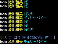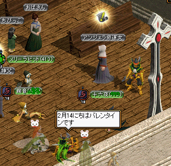 そんな中、正式な引退を控えたある方と雑談。 このトキは本気で雑談ばかりになってしまったけど。 -私信- 亀吉GMを預かることになってから、何度も挫折しそうになりました。〔笑 ぶっちゃけたw〕 とあるトキはダメルの雑貨店だったり とあるトキは、ビガの教会だったり とあるトキは、塔で焼き死に体験したり まじめな会話でGのあり方や、トキに酔っ払って耳したこともありましたね(*´∀`)