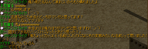 GHレベ2キタワァー*・゚゚・*:.。..。.:*・゚(゚∀゚)゚・*:.。. .。.:*・゚゚・*!!!!! とはいえ、今回亀吉は相手無しの一方的な攻めでした(´・ω・`)ショボヌ テスト鯖で体験したトキは、白チャとか、時間の関係もあったためマッタリ拝見することが出来なかったのですが、今回も 幸い、亀吉は現在シーフ・武道さんがとても多いので、守りになったトキとても活躍していただけそうな気がしないでもない・・。 そして亀吉、ハイ・ペースでGメンバーが増えています。 だけど地はしっかり固めておかないと・・ってことで、Gvが終わった後や暇なトキにみんなであーだこーだと雑談することもしばしば。 人数が増えれば、そのぶん個性もありますし、Gチャだって豊かになります。 亀吉のGチャのログの異常な流れにちょちょwwwwwwwwwwwwww なトキもあるけれど、そんな賑やかなGの裏でしっかりサポートしてくれてる副マスさんや、何かあるとかけつけてくれるGメンバー。 短期移籍の方もいらっしゃいますが、これを機会に楽しんでくれればなって思っています。 同時に、古参メンバーと新しいメンバーの繋がりも、深くなってくれたらいいな(*´ー`*) そして、かのんさん。 ナルの翼を集めるついでに、ハイランダークエをしていたら・・・?1 宝箱から2倍キタ━━━━(゚∀゚)━━━━!! ょ!!!!!!!!!!!1 しかしここは、お察しメリーラビット。とことんついていない、ちまたの呪い評判のごとく・・。 ! フハハハハハおろかな人間め!!!!!!!!!! の、ようなことを叫ばれた挙句 選択肢で脱落・・・・・orz ちょっとメインで挑戦してみようという目標が出来ました ('A`) メインの方は、Gvまでは全く稼動してない感じですね(-″-;) そろそろ資金が尽きてきたので、狩りにいこうと思っています。(聞き飽きたとか言わない。 サブ楽しいよサブ サブといえば、神様こと冬矢。 鶏さん宅にお邪魔していますが、たまにチャットにチラッと入り、Gv時間だとか重なってうまいこと顔出しができていません(´;ω;`) もう少しwizも頑張らなきゃと思いつつ、ステキレベルまでの道のりも遠いです・・・。 GWもあけたことですし、運Gさんとの検証会も予定してるので毎日更新できそうかな! おまけ 亀吉に入団した際に、必ずと言っていいほどこんなイベントが発生します。 THE アダナ決定戦 決定しました。【笑】 ちなみに どんなアダナをつけられても、水虫に勝てるものはないと思っています^^ 名づけ親のくれよんさんも、コッソリinしてP戦に出席してました。 今度は、お盆に会おうね!くれさん(・∀・)! -追記- ナルの翼@89! ナルの翼@89! ナルの翼@89!!!!!!!!!!!!!!!!!! PR TrackbacksTRACKBACK URL : Comments無題Posted by パンスト 2007/05/07(Mon) 17:26:57 EDIT 俺のネタ投下量もたいしたもんだな(゜Д゜;)