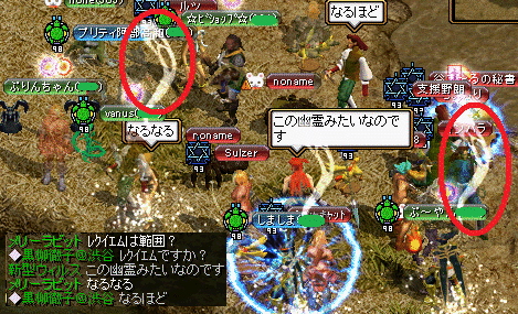 レクイエムの効果は、wiki見てきてくだしぁ(ただ単にwinshotが作動しないだけ というのもなんなので貼っておきます レクイエム効果 さて、レクイエムをかけるとどんなグラになるのでしょう wktk どーん (;゚д゚)....ぎゃぁぁぁぁぁぁぁぁぁぁああああああああああああああああああ 魂がぁぁぁぁぁぁぁぁぁぁぁぁぁぁぁぁぁぁぁぁぁぁぁっ・・・・・ハァハァ 魂抜かれた感じのグラです。 ジョニー・デップを思い出しますね(お前だけ そして、このスキルの範囲 赤でかこっている悪魔さんが、スキル発動者 白枠はかかっている亀吉軍団 緑枠のしゅら・ビショはかかっていません。 範囲的には、ぶつかり合わないとかからないかな? そしてこのスキル おっとΣr(‘Д‘n) 万病で治りますよ。 ちなみに、かかっている間 アスヒ回復量低下・アスヒ発動無効 など体感していました。 スキル説明にあるように、ヒール・アスヒ・吸収など瞬間回復はどれも低下する模様 逆に、ポット・PTH・など徐々に回復していくものは、変化なしでした。 もうひとつ。 このスキルを受けていたGメン一部はほぼ抵抗装備完璧。 知恵・カリスマも高めだったので、抵抗では防げないのかもしれない。 防げない代わりに、動くとアスヒは無条件で発動することが出来、範囲内にいなければいくらバッシブだとはいえかかりません。 かかったら動き、万病で回復、近づかないことをお勧め。 そしてテイマ 相手500前後 ダメ表記3000 ファミリア 励ます・誉めるをかけた後のダメージです。 1100-1500を確認。 物理ダメは、やく半分 と思ったほうがいいのかな。 ちなみにこれ、体感だとかなりダメージあがってます。 ダメ表記6000なら、やく3000はくらって間違いなし。 ファミリアの凶悪さは、以前のGv時に戻った感じですが、どうも受けるダメも同時に上がってる様子。 ここまでか・・・ もうひとつzin 特技完全に出ません。 もう確かめたくてしょうがなかった わかっていた事だけど、ここはあがこうと思い検証に挑んだ。 が、結果は期待を裏切り、 が、どうも解せない・・・ 糸は出ないにしても、モリ2でディスペはくらうし、防御低下もくらう。 特別にグラに変化のない物だけ取り払ったのかな それとも、データー入れ忘れ? なんにしても、凶悪なテイマ時代に戻せとは言わない。 だけどもっと自由度が欲しい。 まあ・・・意見して連絡帳一切返信かえってこないんであきらめてますけどね。 検証のまとめ レクイエムは、万病で治る。 バッシブスキルの為、かかったらとりあえず動いて直す。 えっと、アスヒかける側と、かけられる側では何か変化はあったのかな?情報求 話は変わります お? 何やら亀吉GH賑わってますね(・∀・)ニャニャ そう われ等がテルミ 痛王さんの異次元公開がせまっていました。 もうくやしいので結果だけのせます。 メリが愛読しているブロガーwizラシンさんも来ていて、ホールは大賑わい ちょっと・・それガーゴイル・・・・ そして徹子のブログにもありましたように こいつが立ち上がった・・・ どう考えてもノリでするもんじゃねえよwwwwwwwwwwwwwww 自重しろよwwwwwwwwwwwwww 結果は徹子のブログへ^^ メリがそれだけ稼ぐのに何年かかると思って(ry ヴぁんさん、一言いいたいよ ブログたまには更新しろよハゲwwwwwwwwwwwwwwwwwwwwwww ヨシスッキリ。 この異次元に触発されたメリは、次の目標HPオフィに。 とりあえず速度ミアよりこっちが先かも(テイマ辞任でアチャする為。 ああ、ティルルン 西軍頑張ってるよ! 夏ぐらいには、さば合戦できそうだな(´∀`*)ウフフ おまけ GHでは女だけの秘密会話(ノ∀\*)キャ ネタがないと思って、こんなときにネタ振りまんせー もぉぉおおおおおおうっ・・・ かーわーいーいー(ノ∀\*) ![]() ![]() ![]() ニャンニャン(*´д`*)ワンワン(´∀`*)![]() ![]() ![]() ![]() 徹子も混ざって あ・・・SSとりわすれ;;;; ほら、みんなも見習って夕方のお得スーパーに駆け込むよろし。 ちなみに、メリの出張先なんてね、卵60円だぜ! もやしなんて20円なんだからねっ お得すぎるときは、ミンチグラム40円とかあるんだからっ (マジ ☆ミ3ぷんクッキング☆ミ チョー簡単でうまいミートソースの作り方見つけたwwwwwwww これまじワロスwwww 発言者のノリと、vipのノリが神ってた。 ヾ(*´∀`*)ノわーい♬ あれ・・・・ 最近アクセス数が伸びてる犯人は、お前かwwwwwwwwwwwwwwwwwwwwww(お前とかコラッ 嬉しかったので載せました(´∀`*)ウフフ ウメトラマンの記事のアクセス数が、以前の検証記事のアクセスを上回ってた件 ウメトラ兄弟に嫉妬 PR TrackbacksTRACKBACK URL : Comments無題Posted by パンスト 2008/01/30(Wed) 00:40:09 EDIT 徹子ブログを先に見で誰だよwwwって思ったけどTERUMIだったのか、おめでとう!!